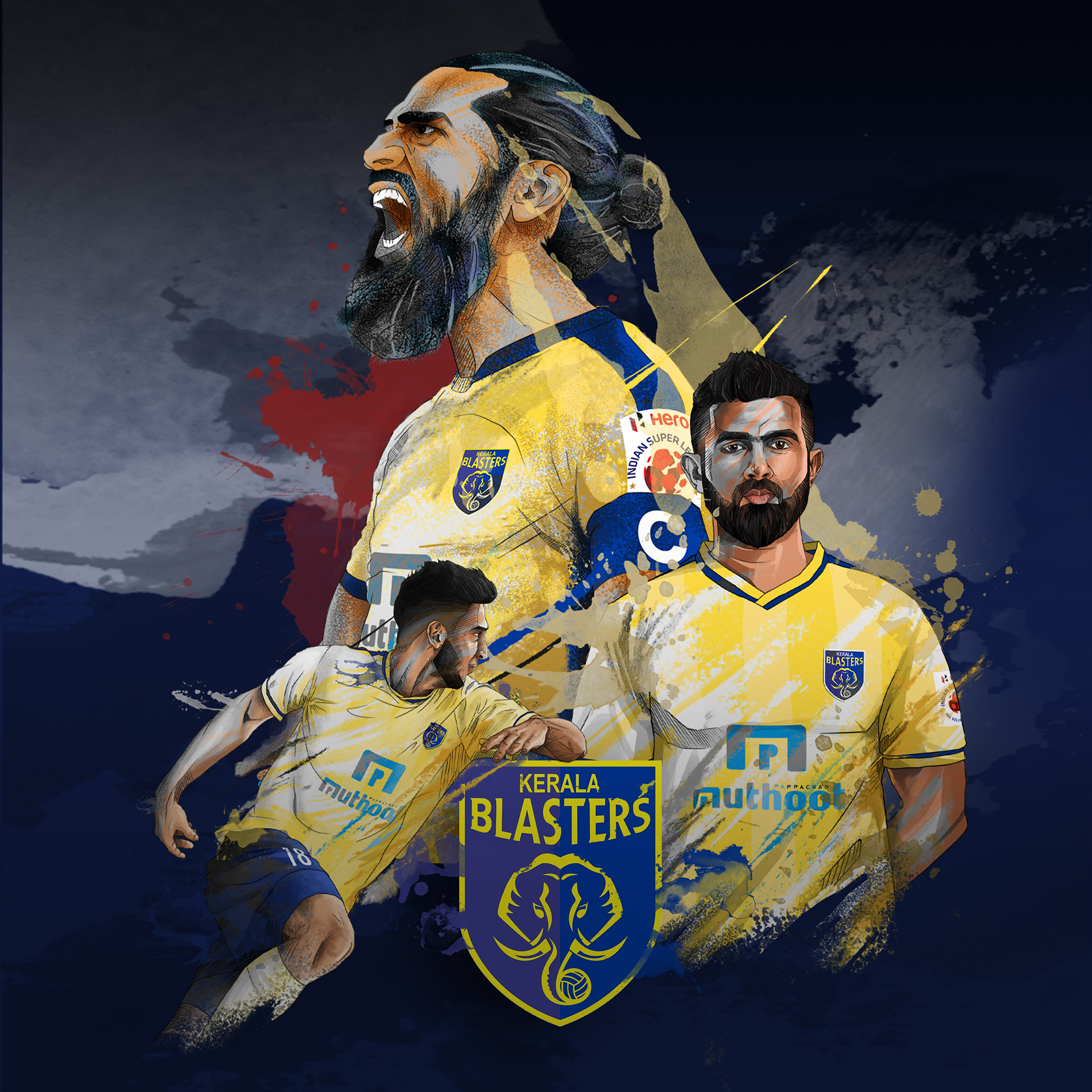 Commissioned by Pitchin, this series celebrates standout players of Kerala Blasters F.C. through bold, high-impact illustration. The goal was simple: capture the rush of football, not just the likeness of the players.