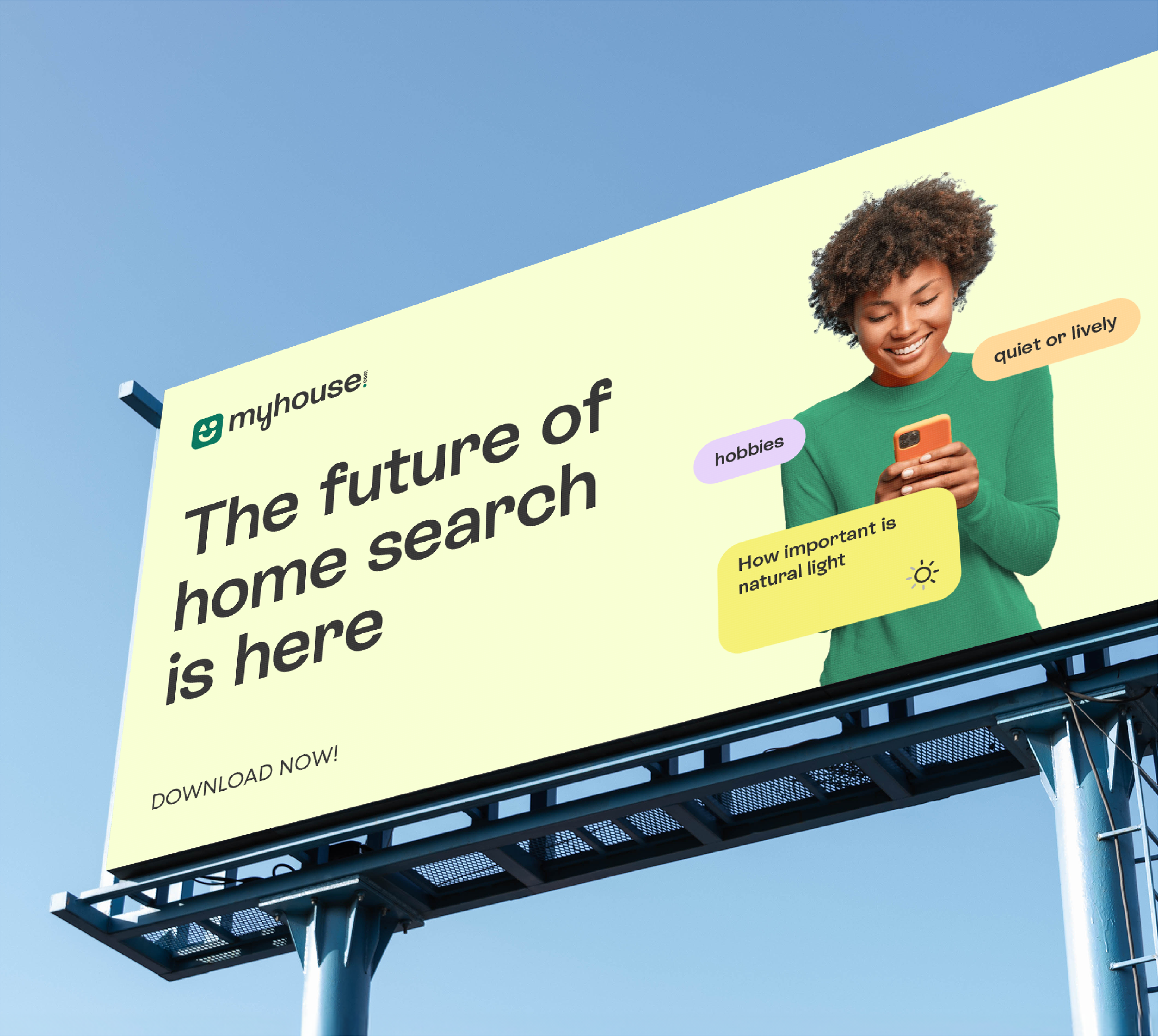 myhouse.com is an AI-powered real-estate platform that recommends homes based on lifestyle and aspirations, not just filters and listings. The identity needed to feel like smart technology with a human heart, turning search into guidance rather than browsing.